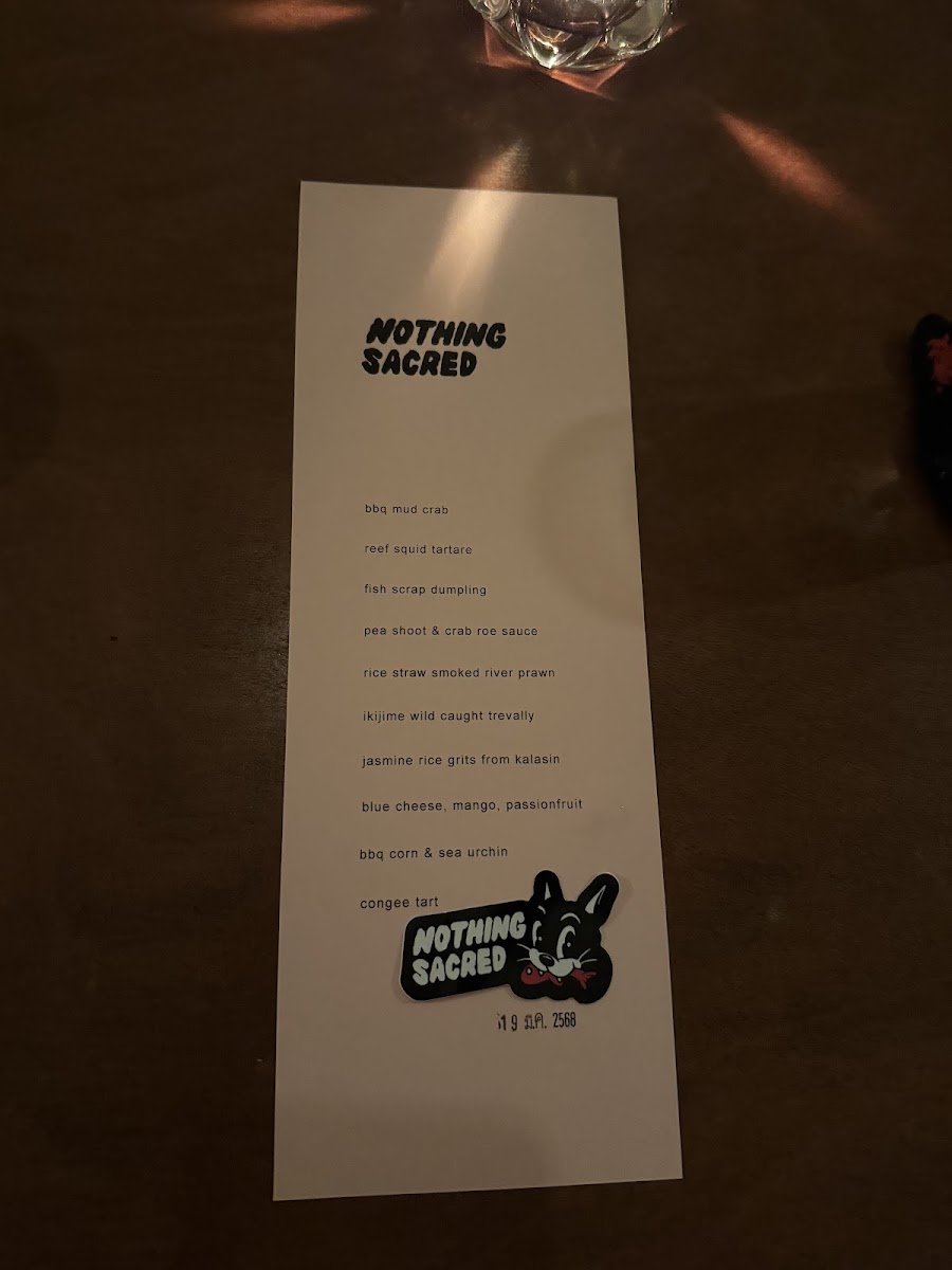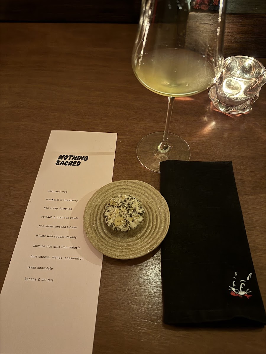 Welcome to Nothing Sacred, an experimental dining haven nestled in Bangkok, where culinary artistry meets intimate ambiance. Founded by the passionate duo, chef Alex Jarvis and Nicole Scott, this unique restaurant harmonizes local Thai flavors with Japanese techniques and North American influences, all while leading the charge in sustainable practices through their zero-waste philosophy.